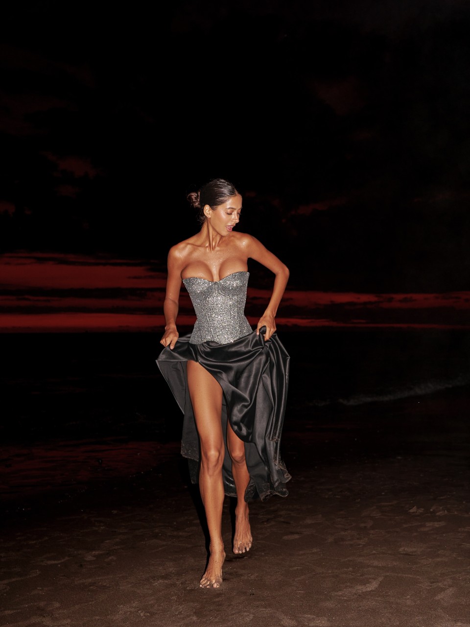 The Black-Colored Skirt "Wind Melody" brings an air of refined elegance and subtle charm. This skirt flows gracefully, offering a timeless and versatile look that can be paired with various tops for formal or festive occasions. The black color enhances its sophisticated appeal, making it a perfect addition for evening events, or any occasion where elegance is desired.