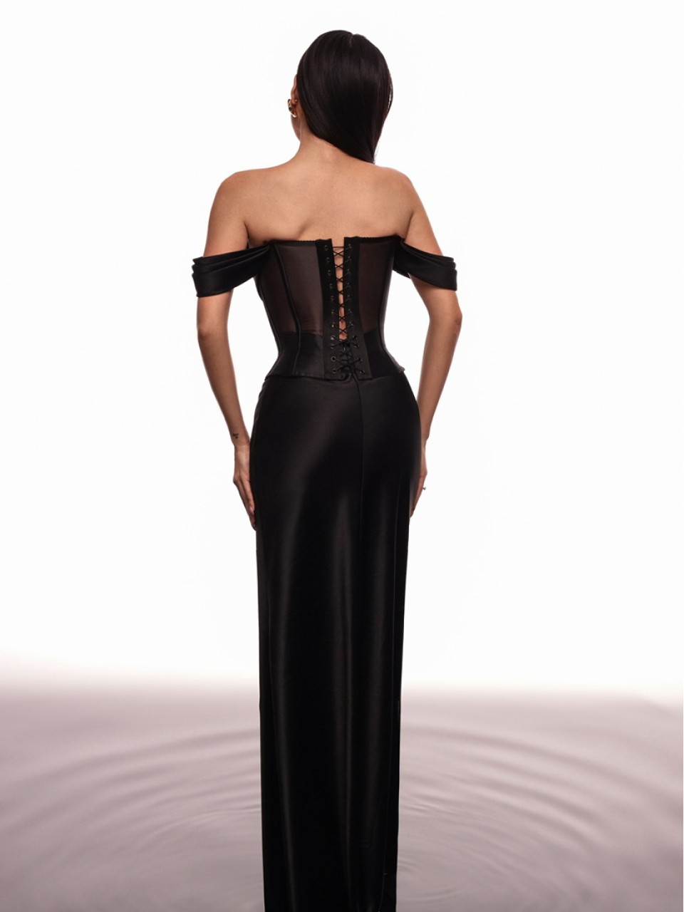 Комплект "Waves" . Корсет з драпіруванням та спідниця в довжині максі. Використання корсетних кісточок, допомагає корсету підлаштуватися під вашу фігуру. Корсет щільно прилягає до тіла, шнурівка на спині дозволяє регулювати утягнення.