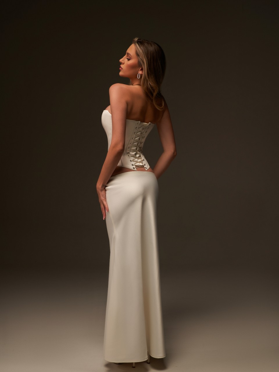 Атласний комплект (корсет + спідниця) в кольорі айворі Milana