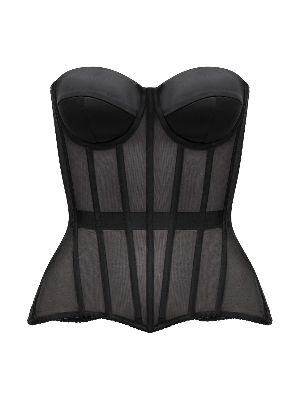 Прозорий корсет з сіточки в чорному кольорі Lia