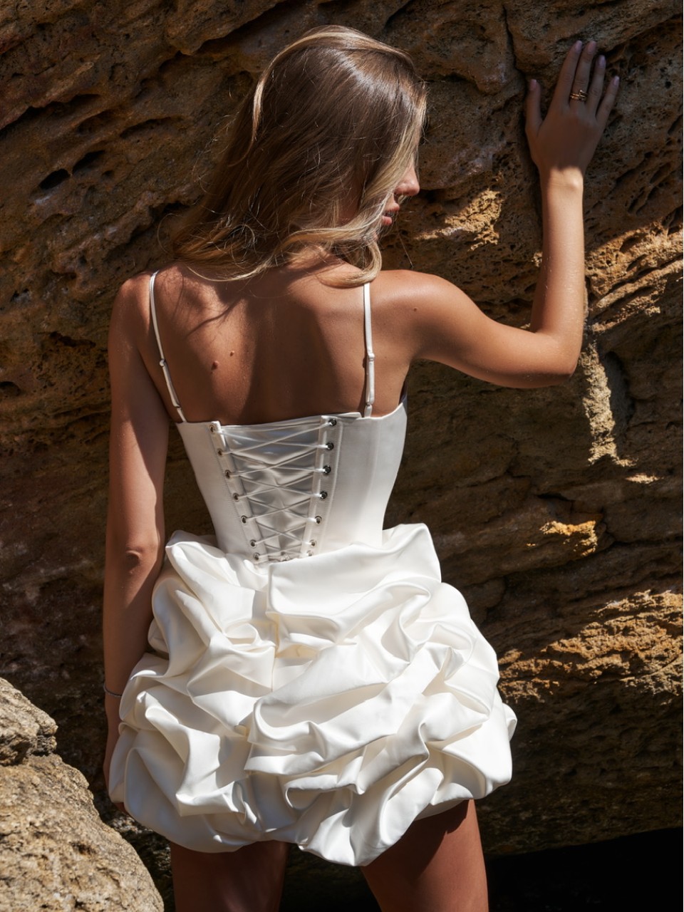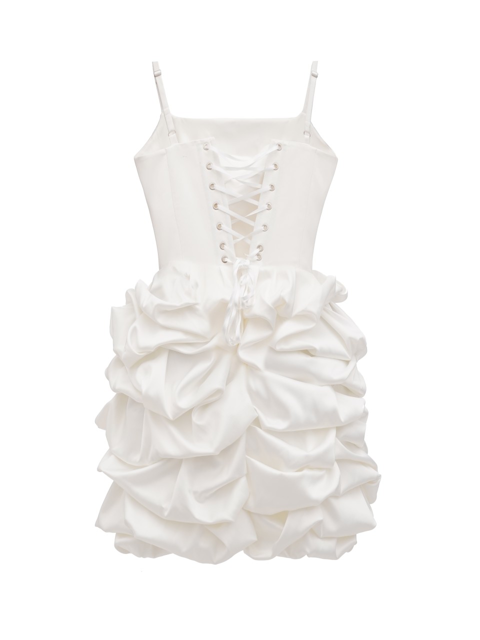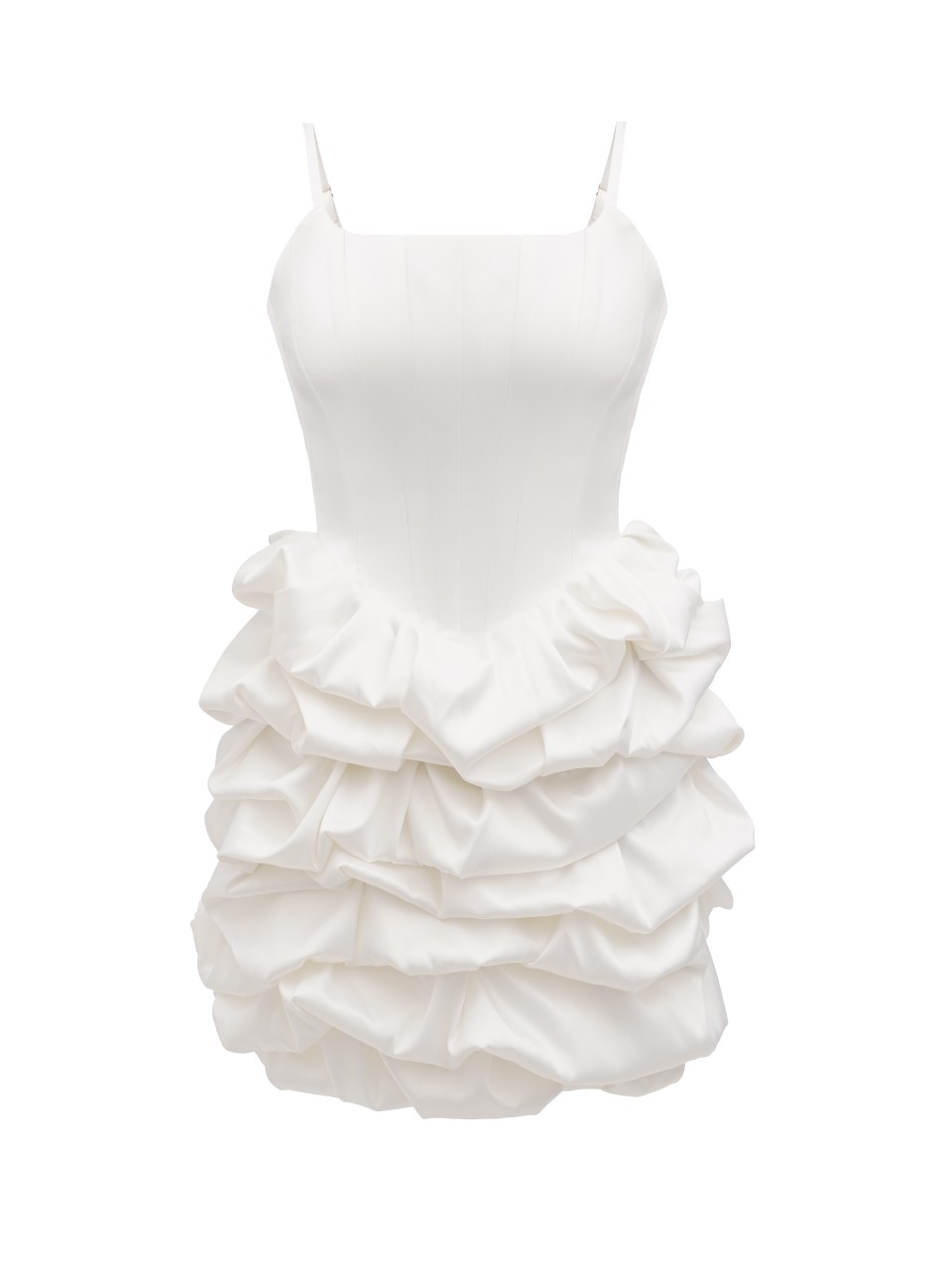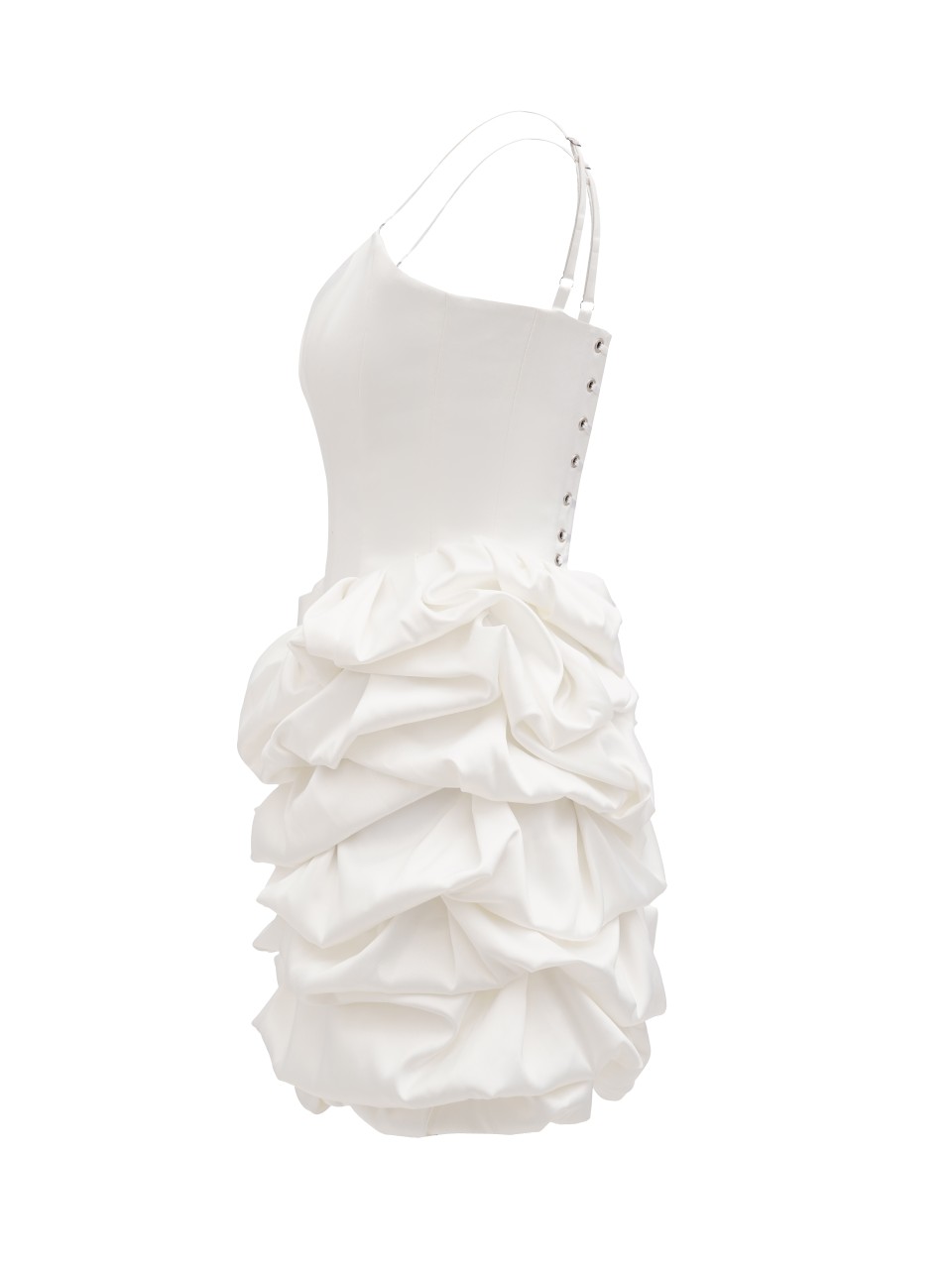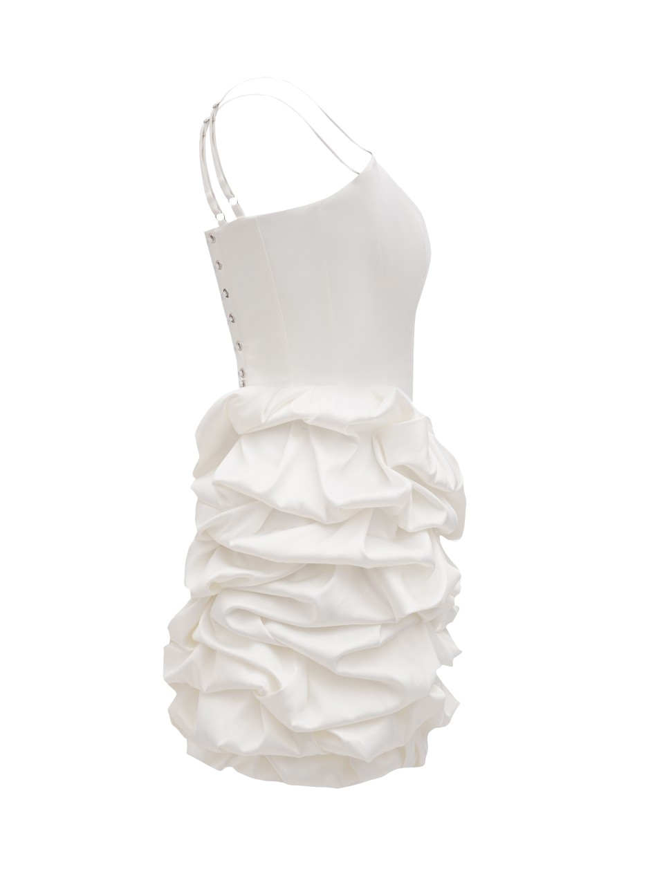 Мінісукня Daintiness із корсетним верхом на бретелях та об’ємною спідницею, зібраною в пишні складки у кольорі айворі.