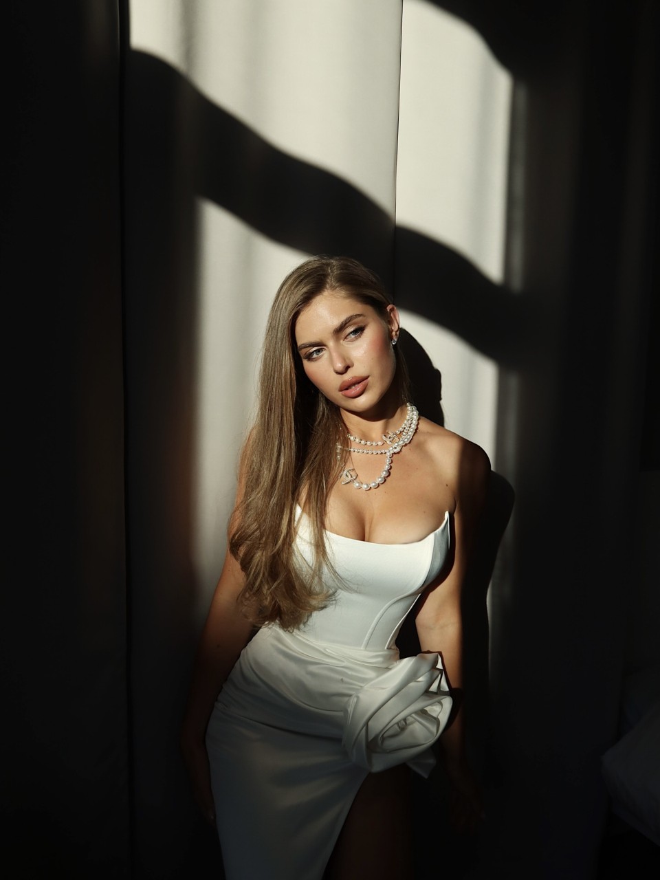 "Rosaline" це корсетна сукня довжини міді. виготовлена з якісної атласної тканини. Сукня без чашечки, підійде на будь-який розмір грудей. Використання корсетних кісточок, допомагає сукні підлаштуватися під вашу фігуру. Низ сукні вільний та має глибокий виріз.