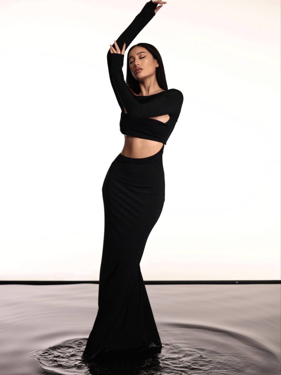 Сукня "SOPHISTICATION" - це символ елегантності та вишуканості. Сукня підкреслює жіночні контури та створює ефектний силует. Виготовлена з високоякісних матеріалів. Ця сукня ідеально підходить для різноманітних заходів - від вечірок до офіційних урочистостей. Вирізи на грудях та животі додають образу сексуальності та родзинки. Довгий та стриманий низ з відкритим та відвертим верхом гармонійно поєднались в цій сукні.