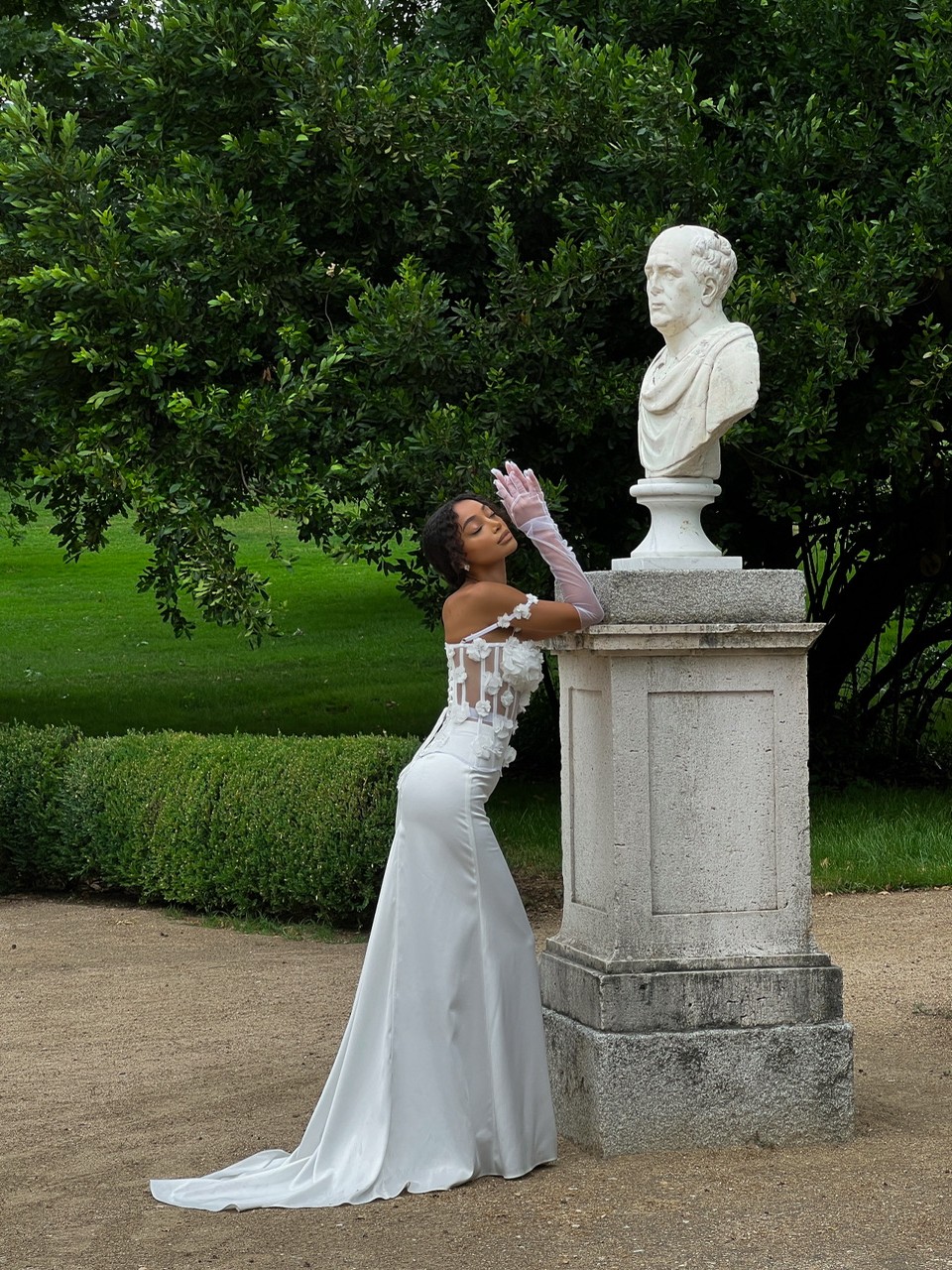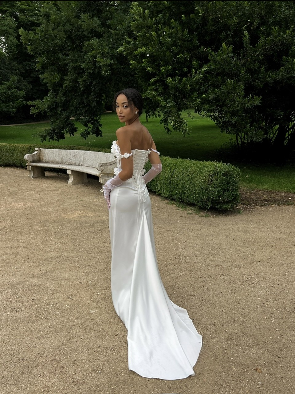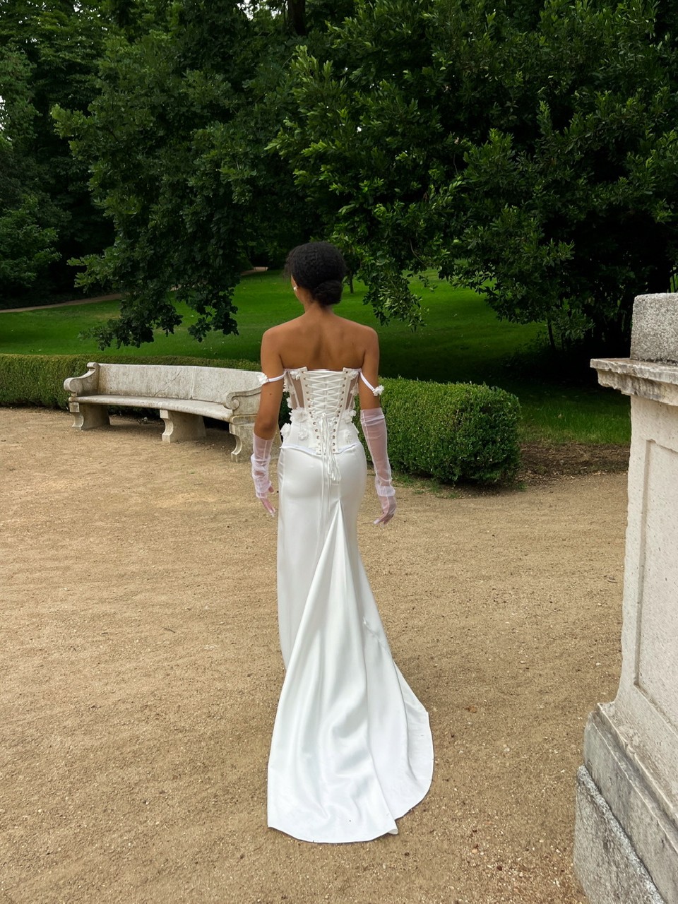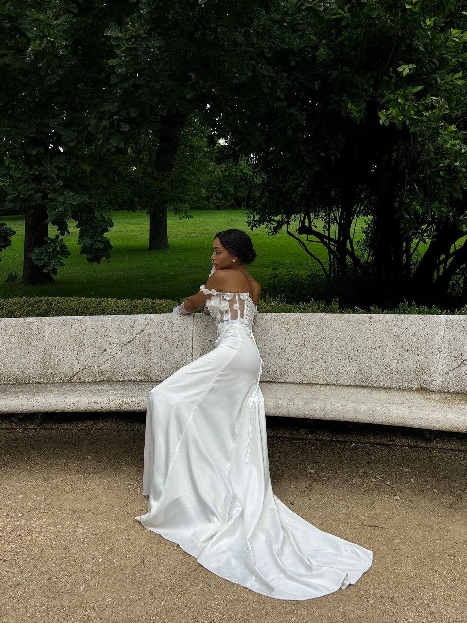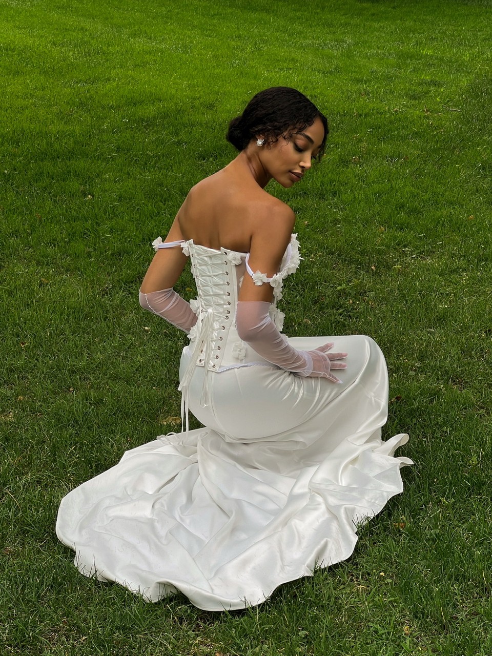 Квіткова романтика в новому світлі — скульптурний корсет, оздоблений ніжними квітами, створений, щоб захоплювати. Та гладка, вишукана атласна спідниця зі шлейфом струмить за кожним кроком, мов тінь світла. Чиста лінія, глибоке сяйво тканини і відчуття простору — це мінімалізм, що запам’ятовується. Створена, щоб залишати враження.